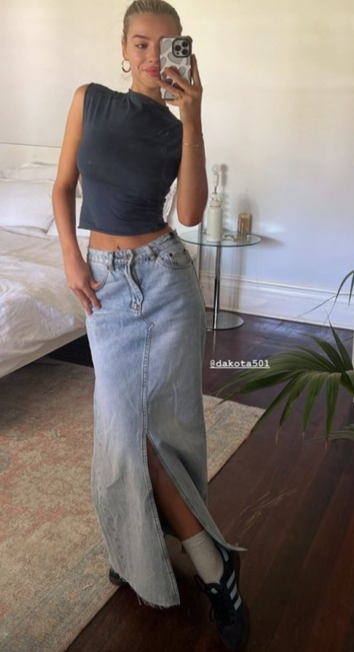 And just like that, denim maxi skirts have become the most coveted piece in everyone's closet for the approaching months. These looks have been popping up all over our pages the past few weeks, and we are so into it. With so many different ways to style it, it holds so much opportunity to fit everyone’s style.